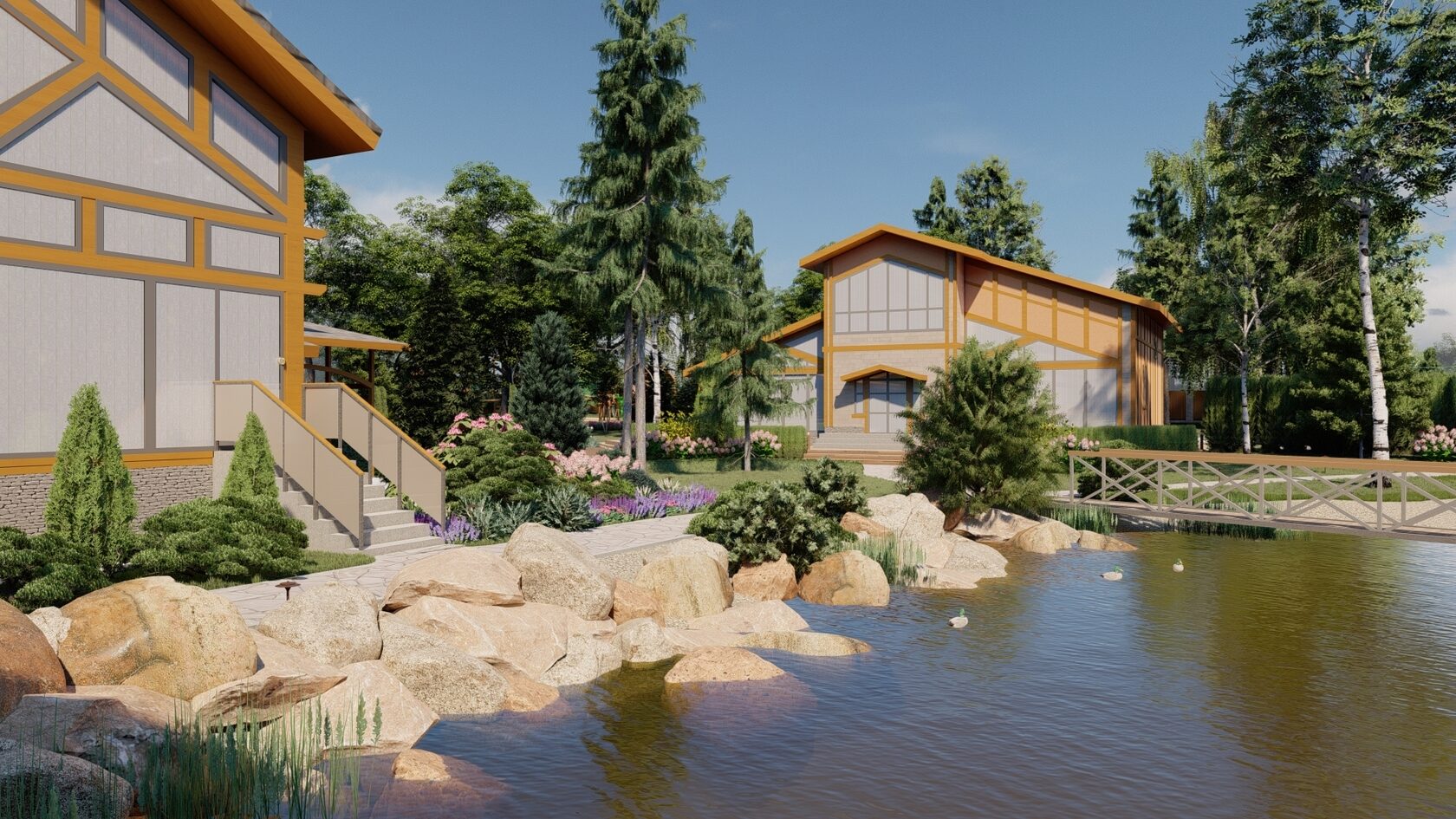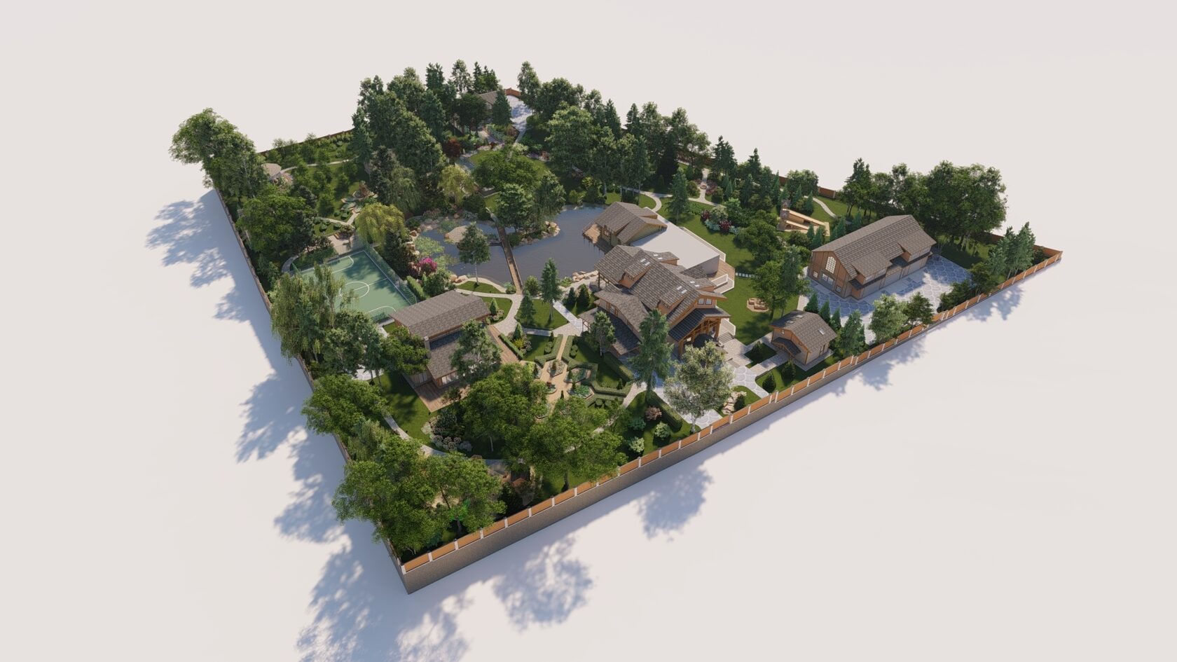 Особенность работы состояла в том, что по мере проектирования территория разрасталась от 40 соток до 1.6га, появлялись новые строения, и конечно, новые пожелания.