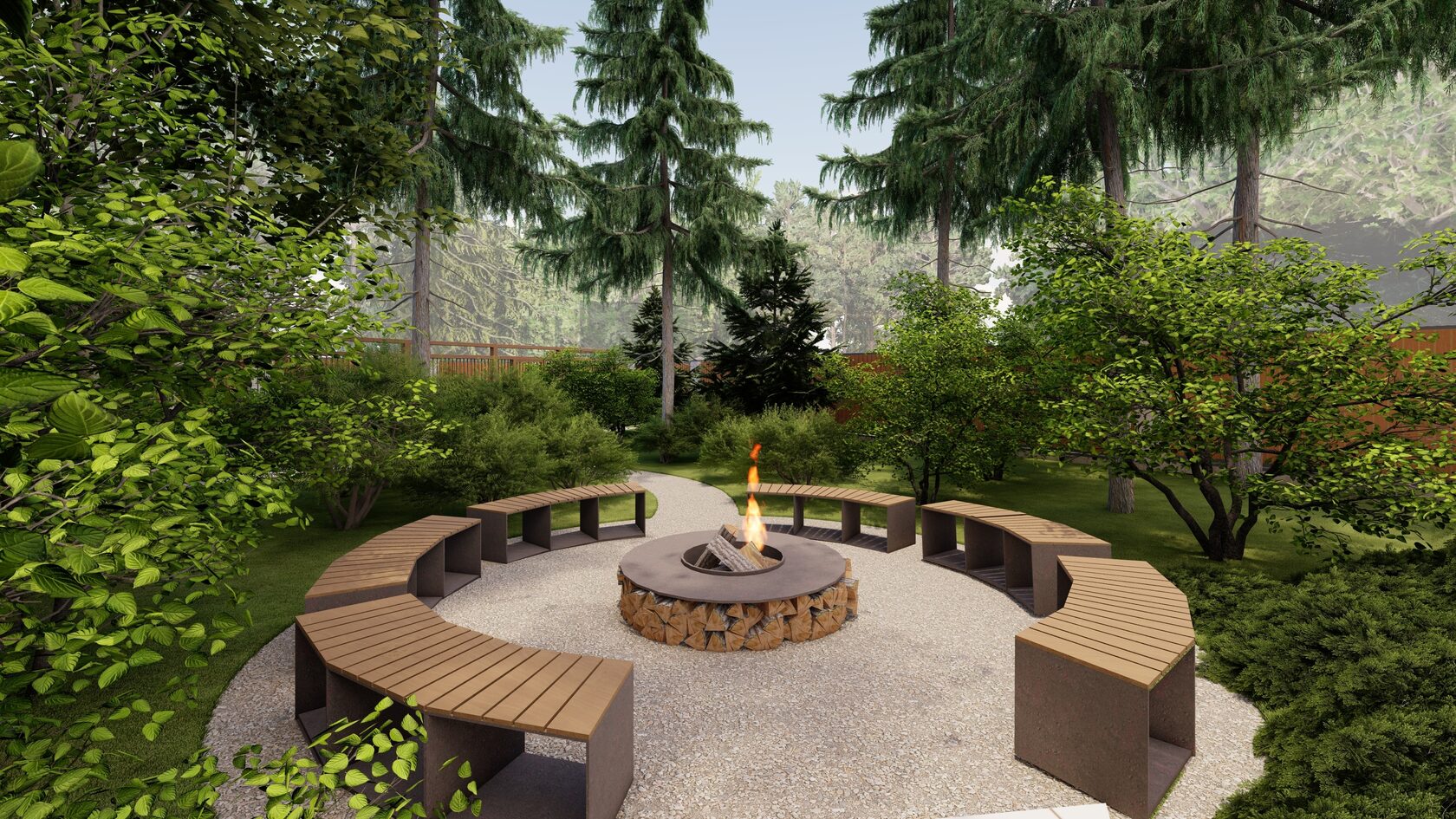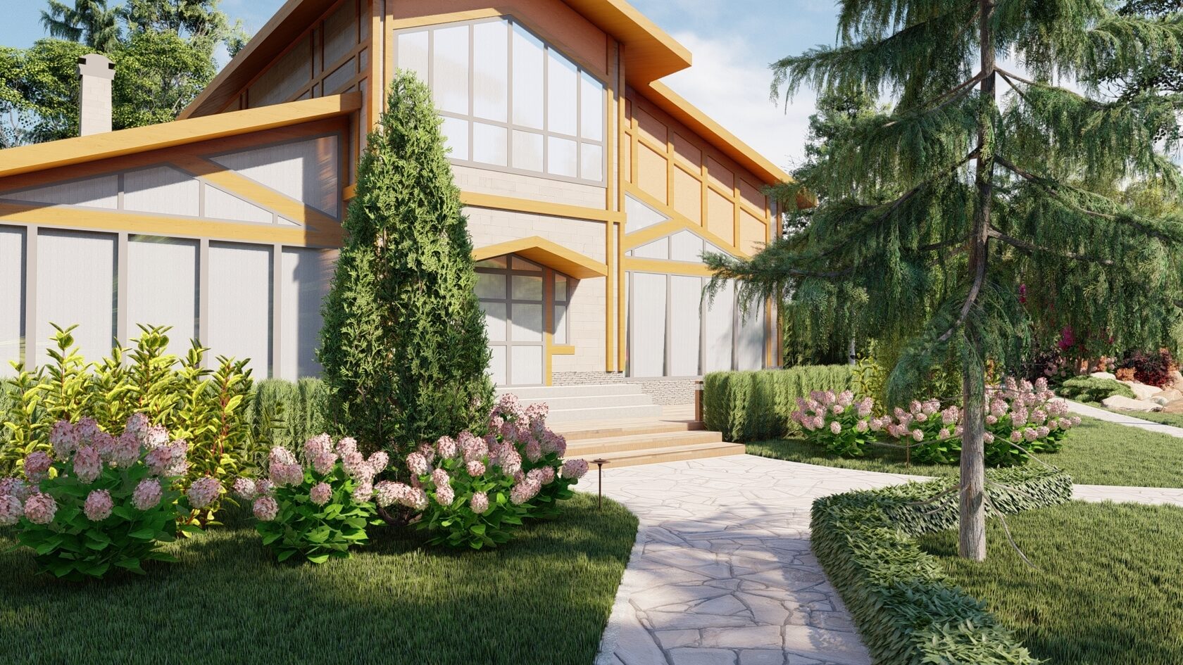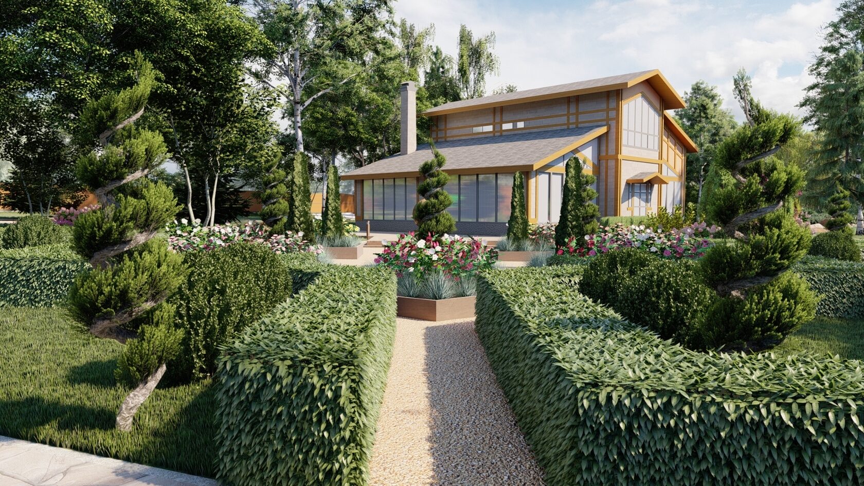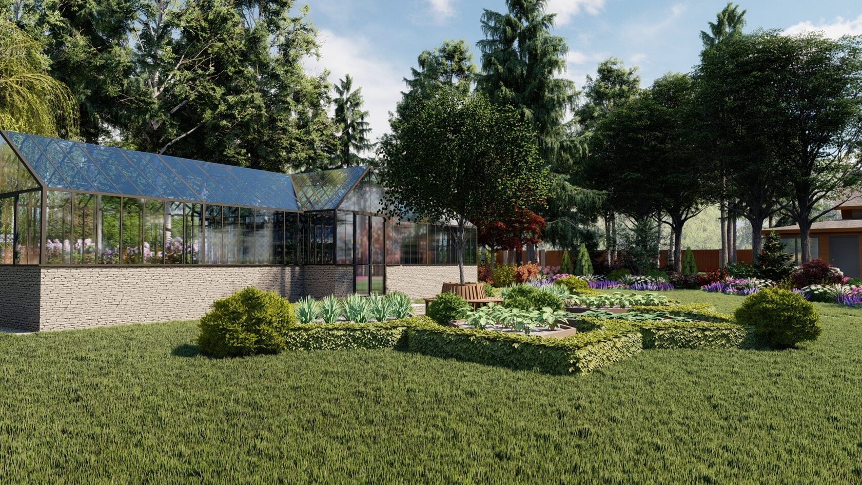 Достаточно большое количество крупных строений, окруженных вековыми дубами и елями предстояло соединить дорожно тропиночной сетью, которая также соединила остальные садовые объекты, не нарушая желаемых хозяевами маршрутов. Первая версия Генплана, была, конечно, менее красочная, чем итоговая. Но заказчица потребовала введения ярких акцентов в так любимый нами спокойный природный стиль